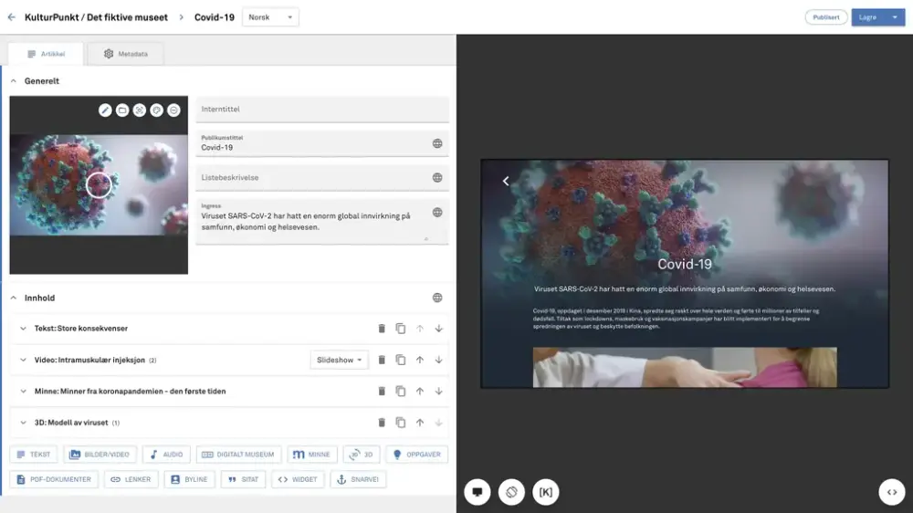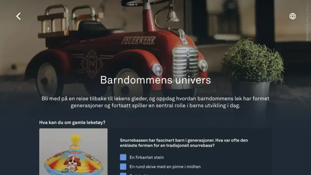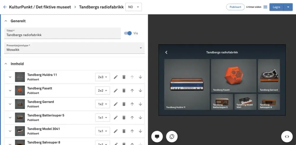 Kulturio Kiosk gir deg enkel tilgang til formidling på skjermer i utstillingen. Med ferdige maler kan du med bilder, video, lyd og tekst skape en interaktiv dimensjon som engasjerer publikum.